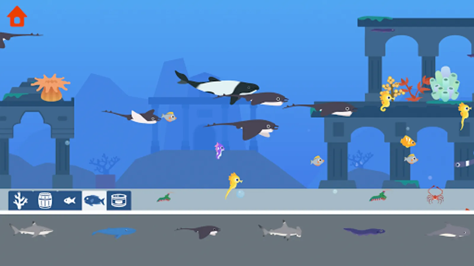 Construct the ideal home for your marine friends! With a sandbox-like environment, position coral, shells, and even treasure chests to perfect each home. In this part of our adventure game, there are no boundaries! Feed and take care of marine life, including whales, dolphins, and manta rays. You'll encounter up to 35 species of marine animals and learn about their diets and their roles as predators or prey.