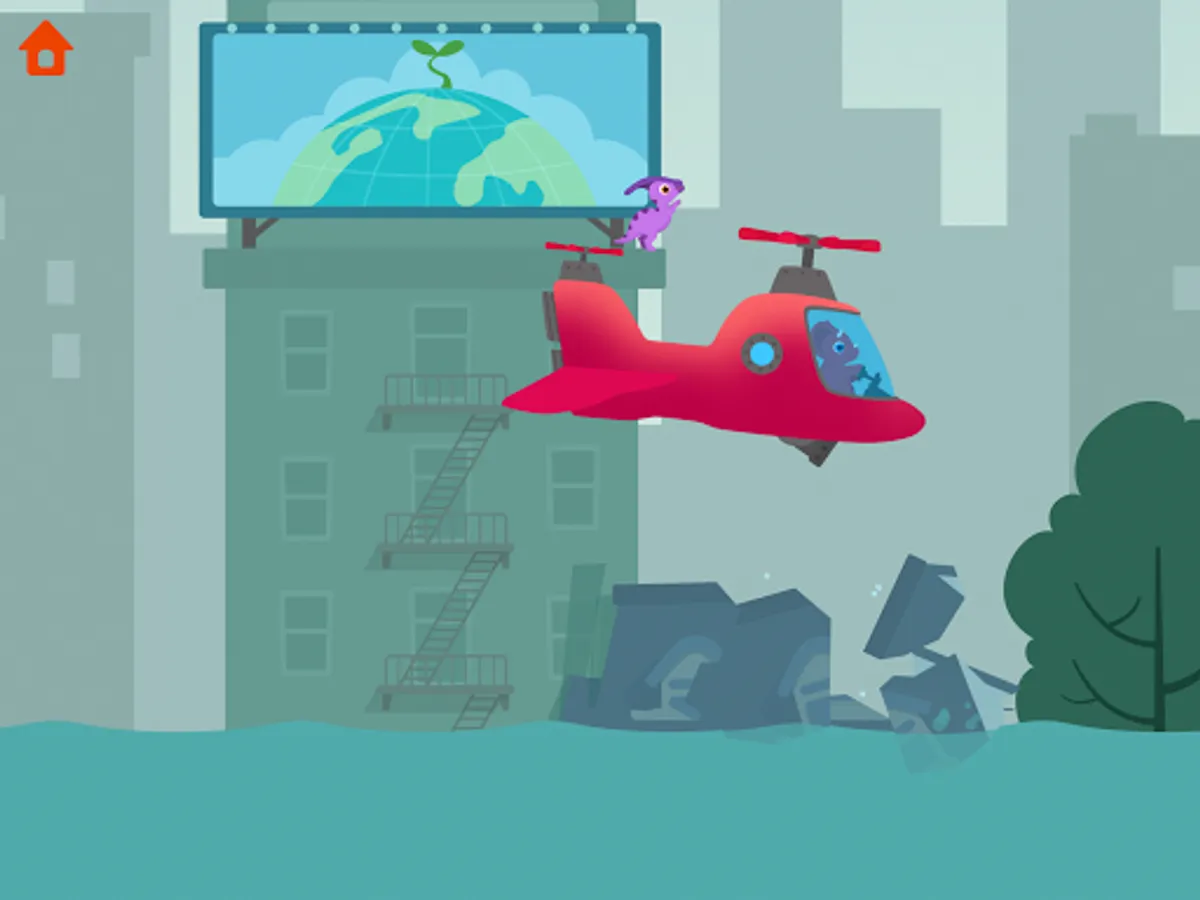 You can explore wherever you like. Enjoy the passing scenery as you navigate to help other dinosaurs, as the rescue areas vary from tropical islands to urban locations!