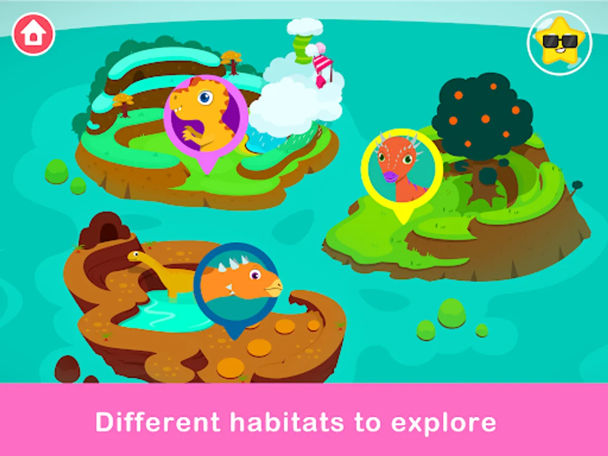 The daily life of the little Triceratops is filled with playful activities. Your child can guide the Triceratops to jump in mud pits, swim underwater in search of hidden treasures, hop onto trees from the ground, and swing through the forests using vines. There's always a new discovery waiting around the corner, and each reveals an interactive puzzle that helps children learn about shapes, colors, and the prehistoric world.