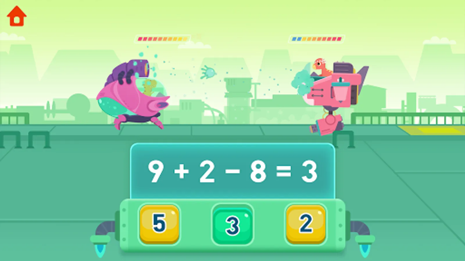 Every time the child completes a task, they will be rewarded with a component. After collecting four components, they can unlock a new battle robot in the math factory.