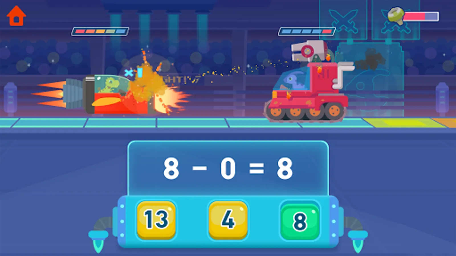 Drive 20 cool combat mechas, and answer questions correctly to beat your opponents! The game will increase kids’ interest and enthusiasm in Math and is powered by a huge question bank to help them improve their math skills.