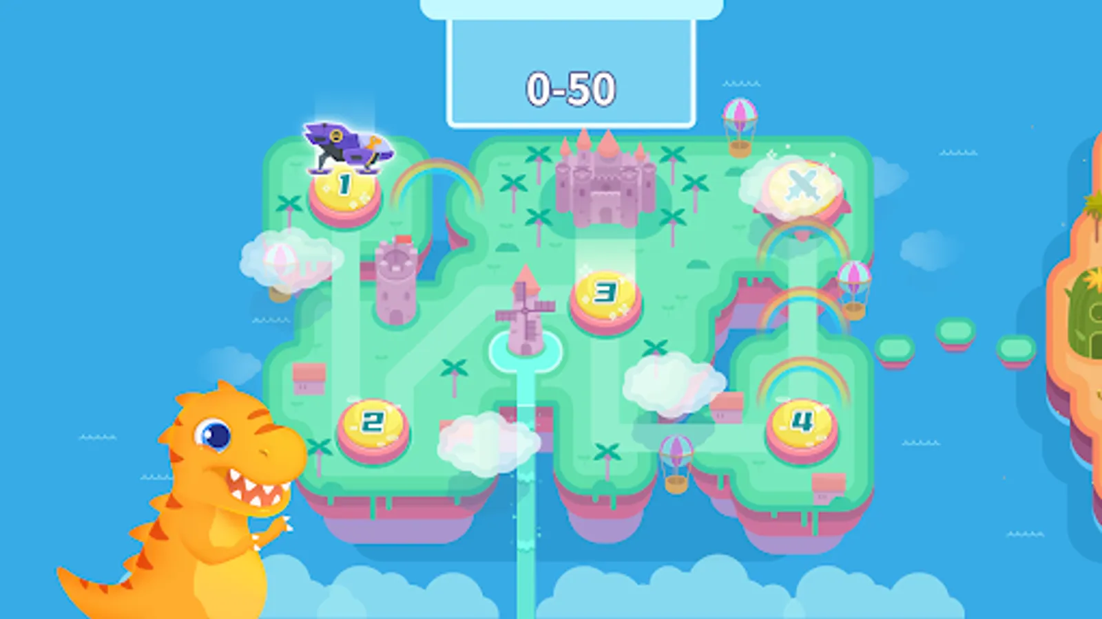 Six themes and 30 scenes! Kids can explore the magical math world at their own pace, from tropical grasslands to the iron city and from the sky castle to the sea world. There are also 18 awesome spaceships! Choose your ideal spaceship and customize your hero adventure! Tap the scene elements and explore. A precious friendship awaits you!
