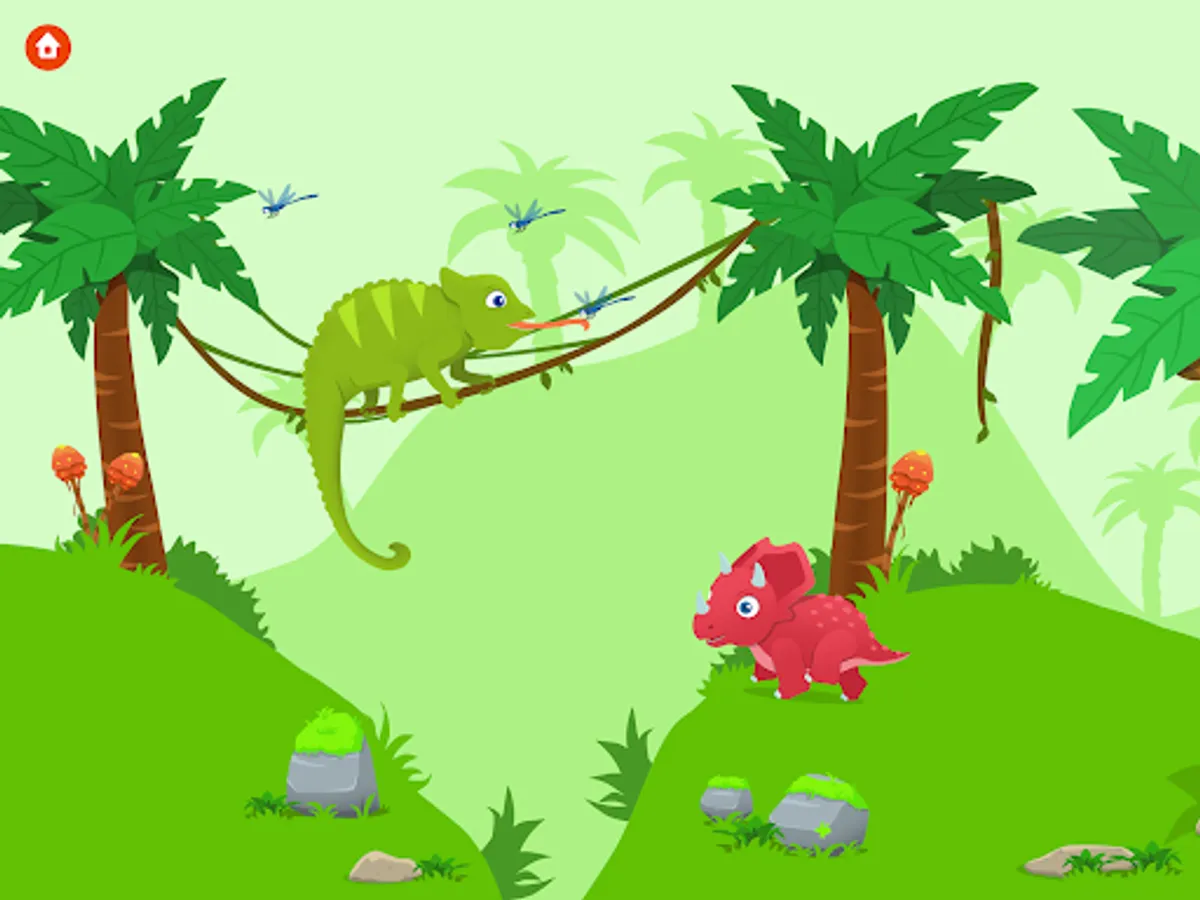 Discover & Learn: As your child navigates this dinosaur game, they’ll be introduced to various colors and shapes in fun and interactive ways. A hidden world lies beneath, where a mole family calls the rainforest home, and tapping a snack machine unveils delightful treats. But that’s not all—curious rocks might just reveal a playful baby Dilophosaurus!
