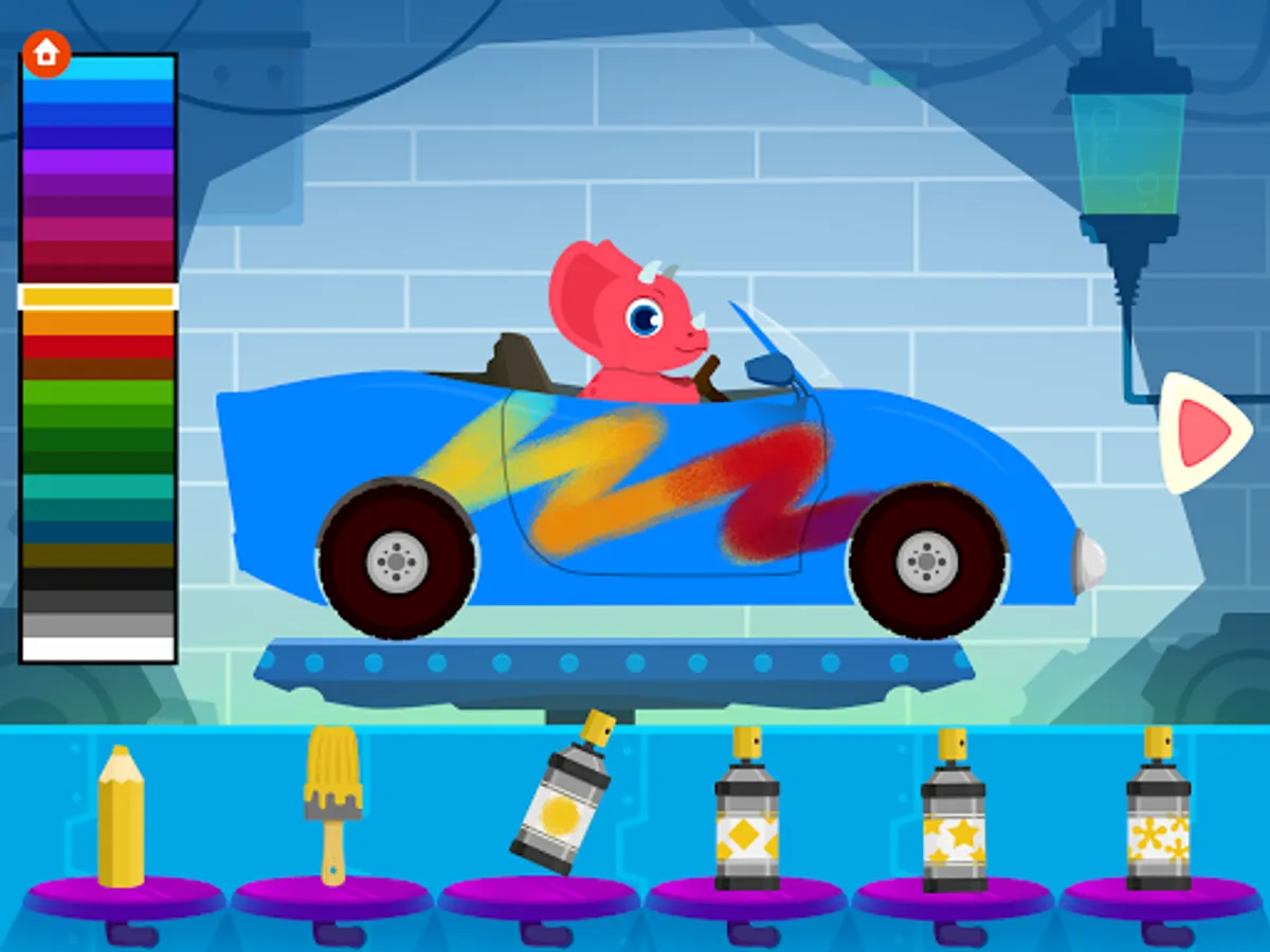 Come! Paint and create your unique car in these amazing car games for kids! Join us in exploring the islands. The little dinosaur will be your driver. He will guide you through the whole adventure in this enchanting world of car games for kids!