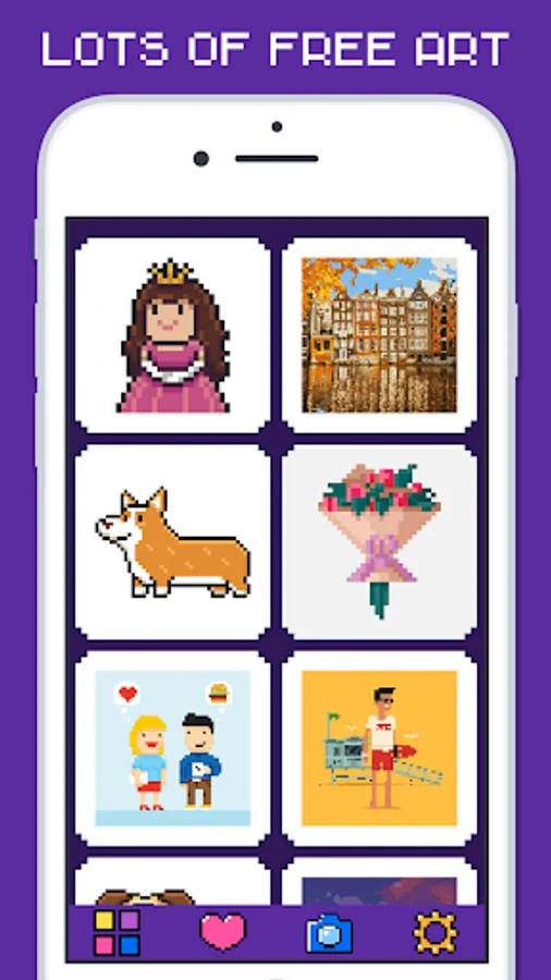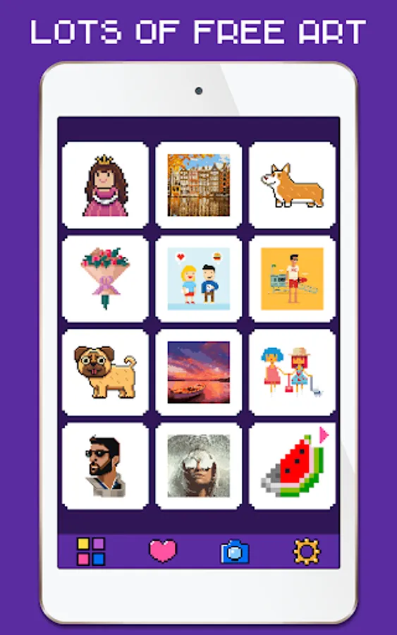 • Pixel Art camera. Take selfies or use photos to turn them into your own color by numbers pixel art! Pixelize and paint by numbers all your photos for free!