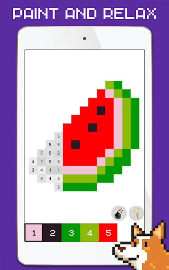 • Coloring by number magic tools: use magic wand to paint same color cells or use a magic bomb to paint areas