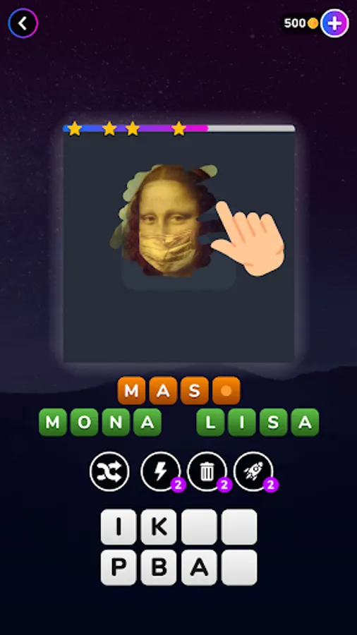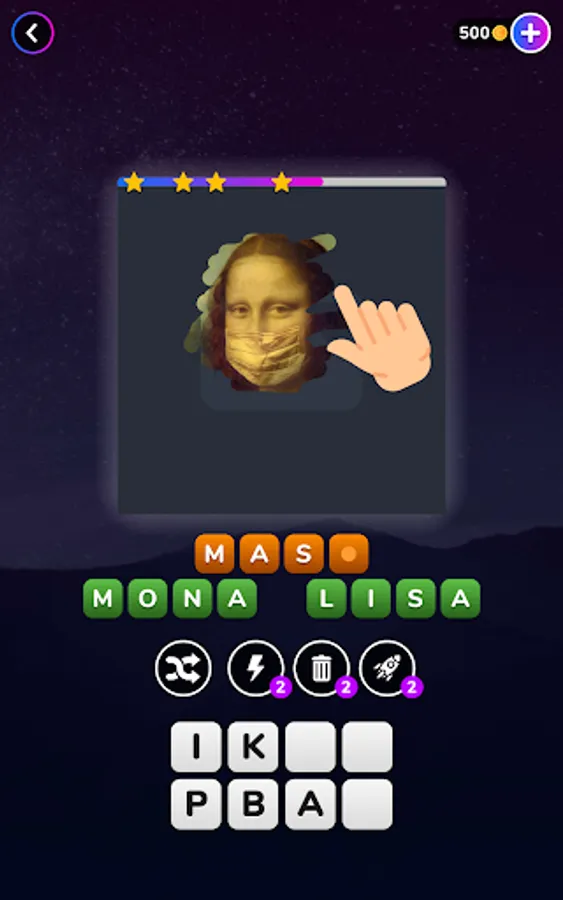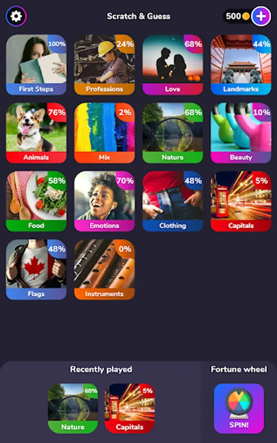 Scratch the photo to reveal it. As soon as it becomes clear what's on the photo, type the answer and get bonus coins. Less you scratch, more you earn!
