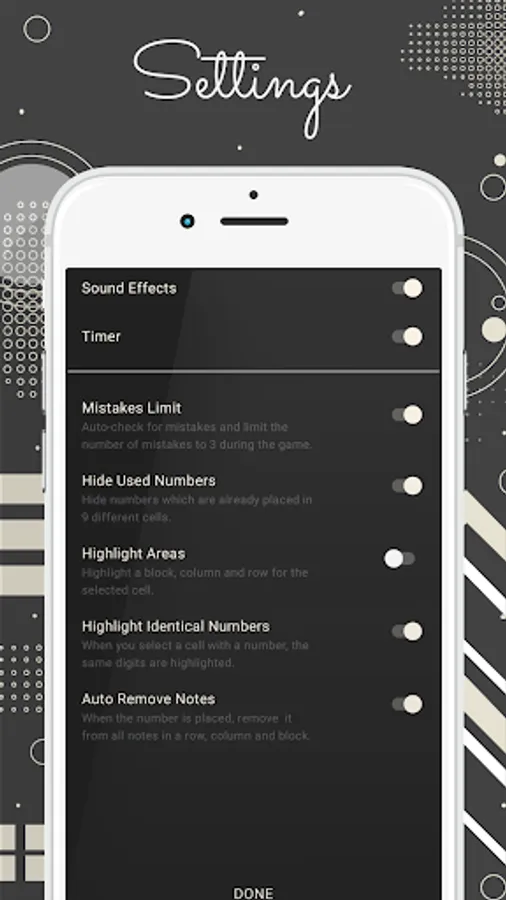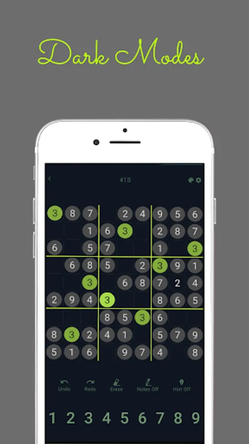 4. Turn on notes to make notes as on paper. Each time you fill in a cell, notes are automatically updated !