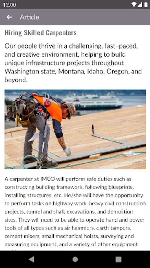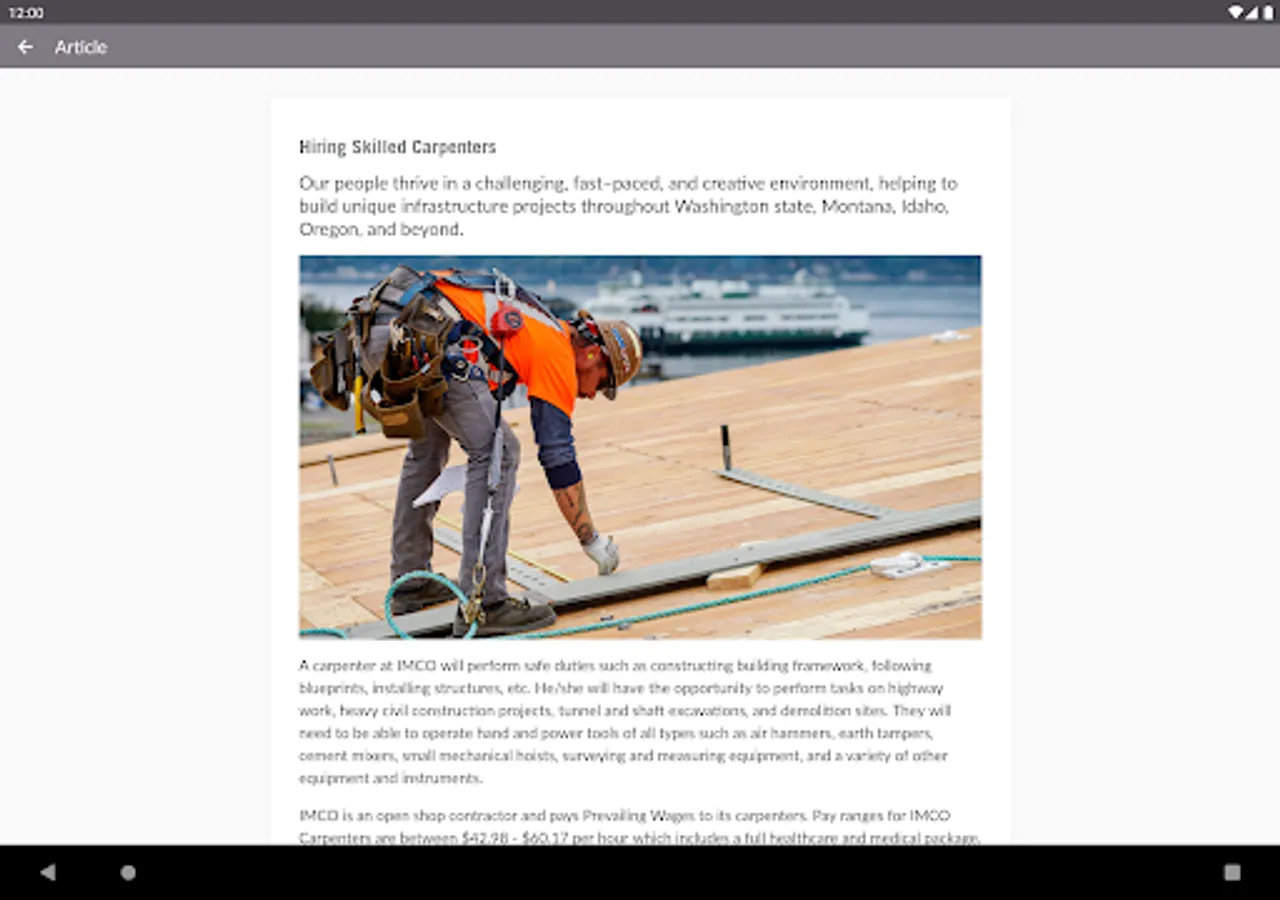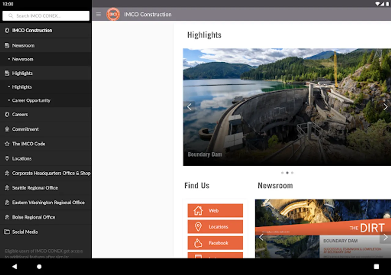 IMCO Construction offers collaborative construction services for hydro, transportation, water/wastewater, and industrial clients. This app is available for employees, prospects, partners, and customers to access resources and engage with the company regarding opportunities. Access IMCO company news, job openings, and events calendar.