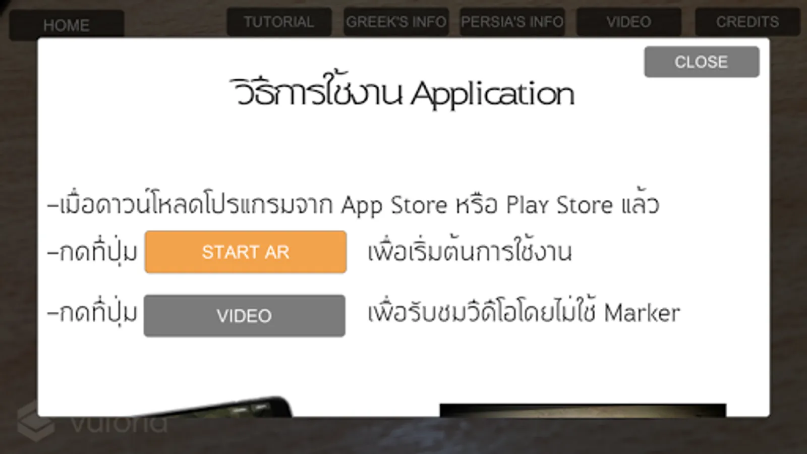 Developing apps function CGSC109 This quote comes from the book The Art of Battle Pong Challenge worried Chom Phon King brother Open University. Prince Chakrabongse Pownat Royal Phitsanulok Prachanat The reenactment of the Battle of Gaugamela Las Vegas between Greeks and Persians contains audio narration. animation Completeness and sound After users download the application and install successfully. Markers can be used to illuminate the cover of a book to commemorate the inaugural event in 2561, 109 years to see the battlefield scenario. (Or marker users can download from this link. http://imagine.co.th/sgsc109/ar_marker_map.jpg http://imagine.co.th/sgsc109/ar_marker_cover.jpg)
