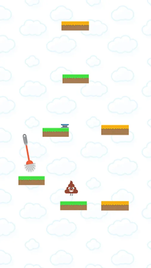 This leaping game is about poop 💩 who leaps up to gain his freedom. Leap on the different platforms and look for a trampoline to soup up. Be careful don't touch the toilet brush / plunger otherwise you will be washed away. We hope you will like it as much as we do.