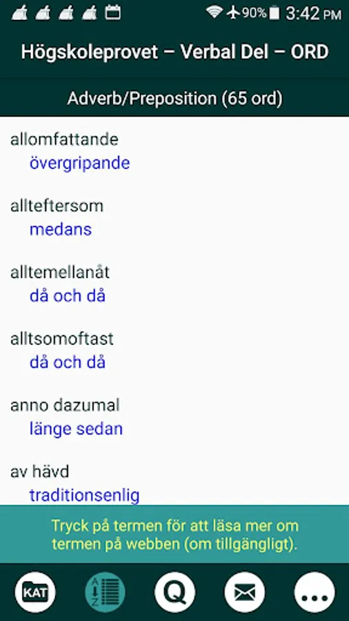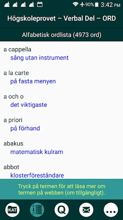 The app contains a dictionary with over 5000 words of explanations. The words are arranged in categories for a more focused learning. Look up the "in-depth" explanation for each word online, directly from the app.