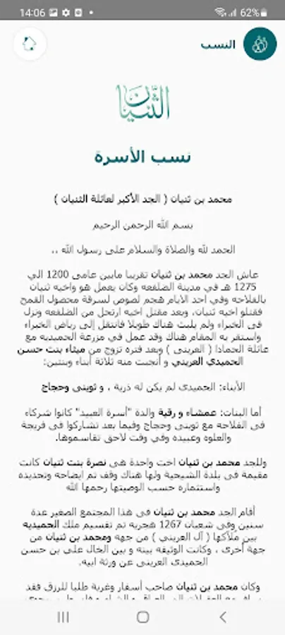 This application is one of the general references that serve individuals, genealogies and friends of the Al-Thunayan family from Riyadh Al-Khubra, Al-Bada`i and all regions of the Kingdom of Saudi Arabia. The app aims to connect people from all over the world, increase cohesion, and support multiple family charitable programs.