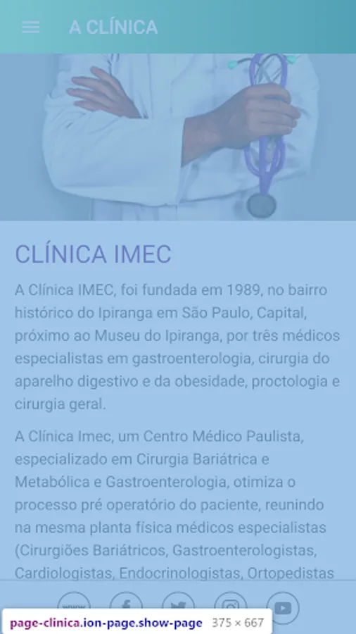 The IMEC Clinic, was founded in 1989, in the historic neighborhood of Ipiranga in São Paulo, Capital, close to the Ipiranga Museum, by three doctors specialized in gastroenterology, surgery of the digestive system and obesity, proctology and general surgery.