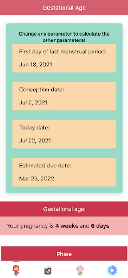 🔸 Precise pregnancy parameters calculation with most commonly used formula.
