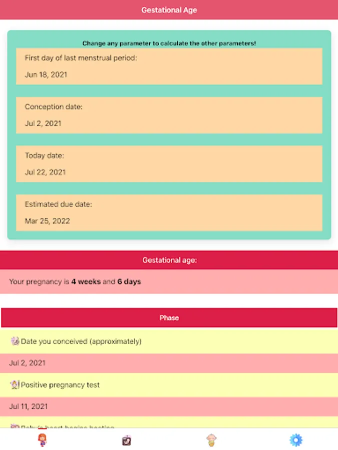 Disclaimer: all calculations must be re-checked and should not be used alone to guide patient care, nor should they substitute for clinical judgment. Calculations in this "Pregnancy Calculator Pro: Maternity & Motherhood" app might be different with your local practice. Consult to expert doctor whenever necessary.