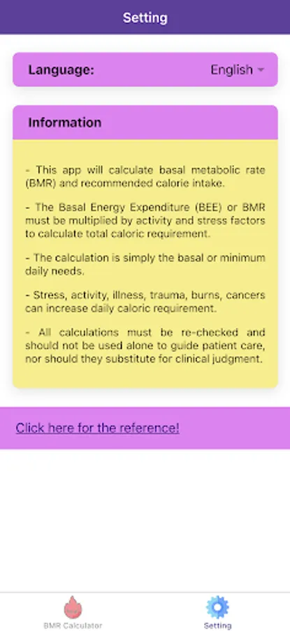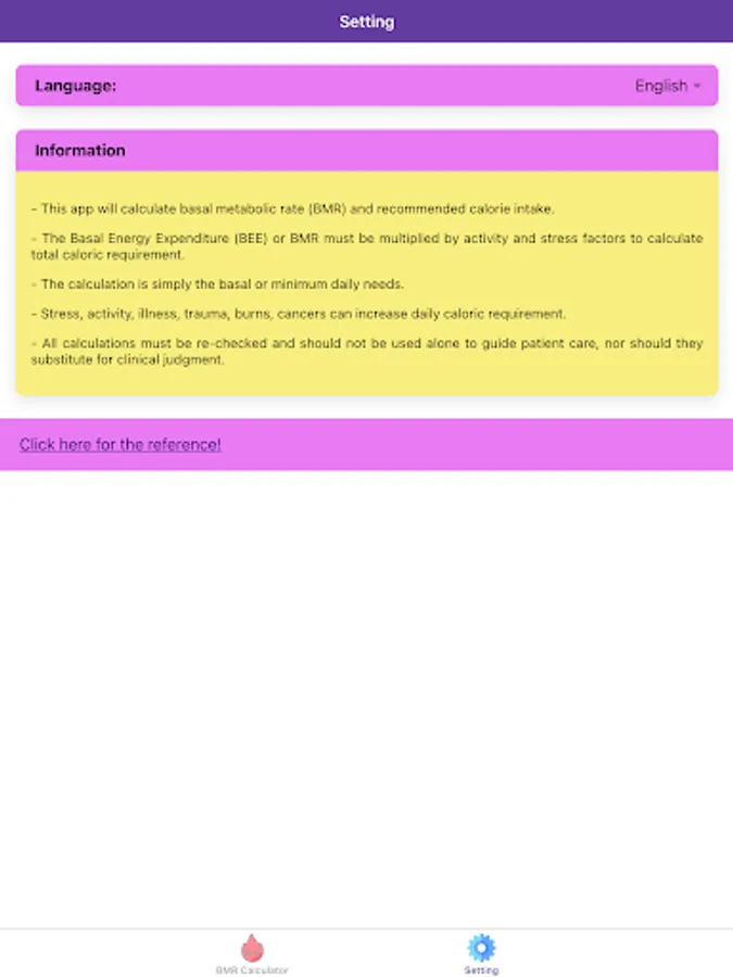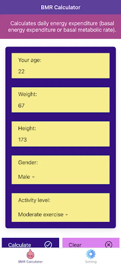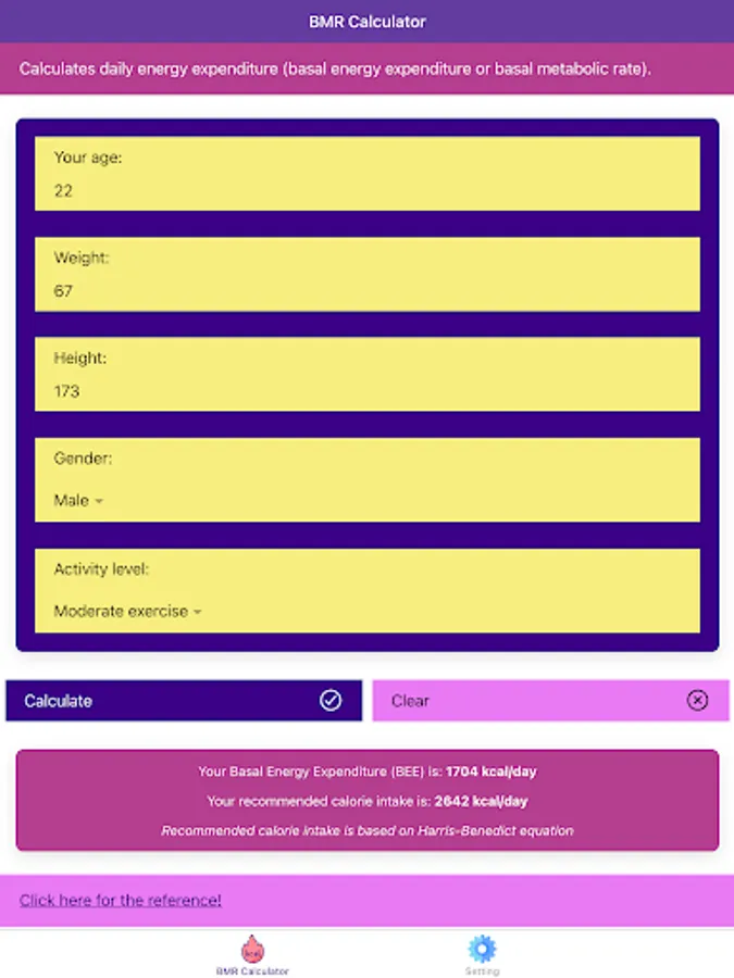 "BMR Calculator Pro - Basal Metabolic Rate & Energy" app also takes account the activity level for adjustment to recommended calorie intake based on Harris-Benedict equation. "BMR Calculator Pro - Basal Metabolic Rate & Energy" app is intended to help medical practitioner or general people to determine their daily energy expenditure and recommended calorie intake. The calculation can be used as guidance to avoid over or under intake of calorie which can lead into obesity or underweight and subsequently several diseases. Download this "BMR Calculator Pro - Basal Metabolic Rate & Energy" app now!