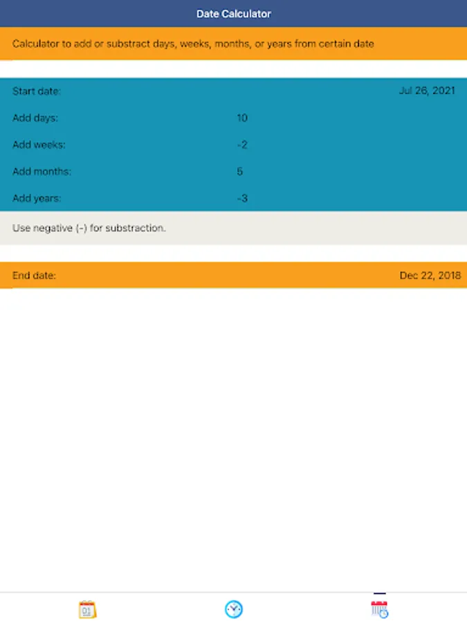 The duration calculation in “Date Calculator Plus: Time, Dates, and Calendar” is broken down into days, weeks, months, years, hours, and minutes. This “Date Calculator Plus: Time, Dates, and Calendar” app can be used in your daily life, such as calculate your exact age, age difference, duration to certain dates, and many more. Download it now!