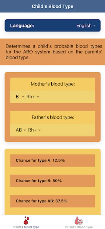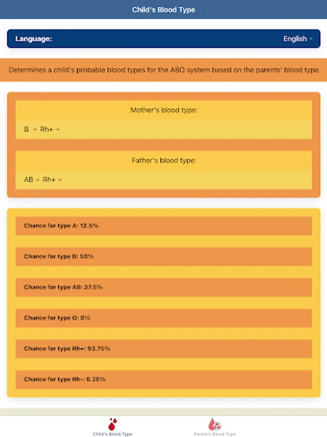 🔸 Very simple app to know the probability of your blood type or your parents blood type