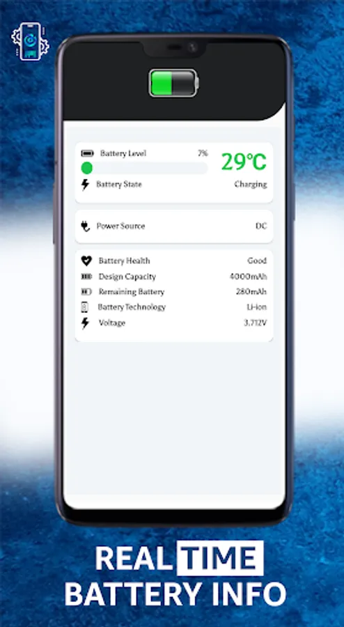 Battery info: IMEI tracker device info show real-time report about your battery status, technology, health, temperature, level, voltage, current, and capacity.