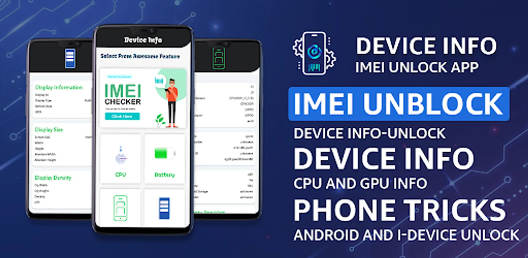 Welcome to our new IMEI Checker - Find device info & IMEI Finder app that is used to check IMEI and find my device which is lost and free IMEI number checker to unlock IMEI and unlock device free of cost. Are you looking for an IMEI finder application? If yes then download our free IMEI number Checker - find my Device Info App. Imei checker and device info app shows you all the device network info and hardware information about your phone. See the build serial number, Memory info, Battery info, network info, and IMEI number tracker functionality