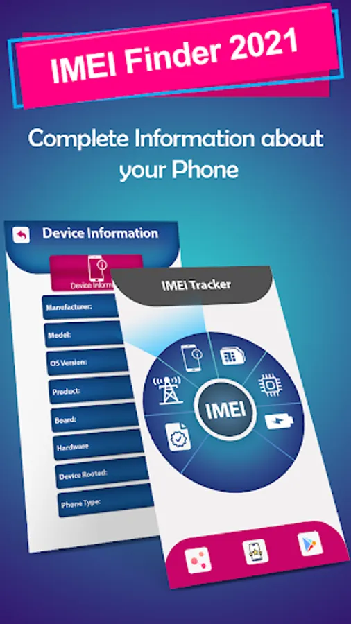 IMEI Checker app also added dual sim functionality. IMEI Number Checker for android mobile phones to get IMEI Number of all Sim Slots. Find Device info is the best app for view all the basic information about your device.