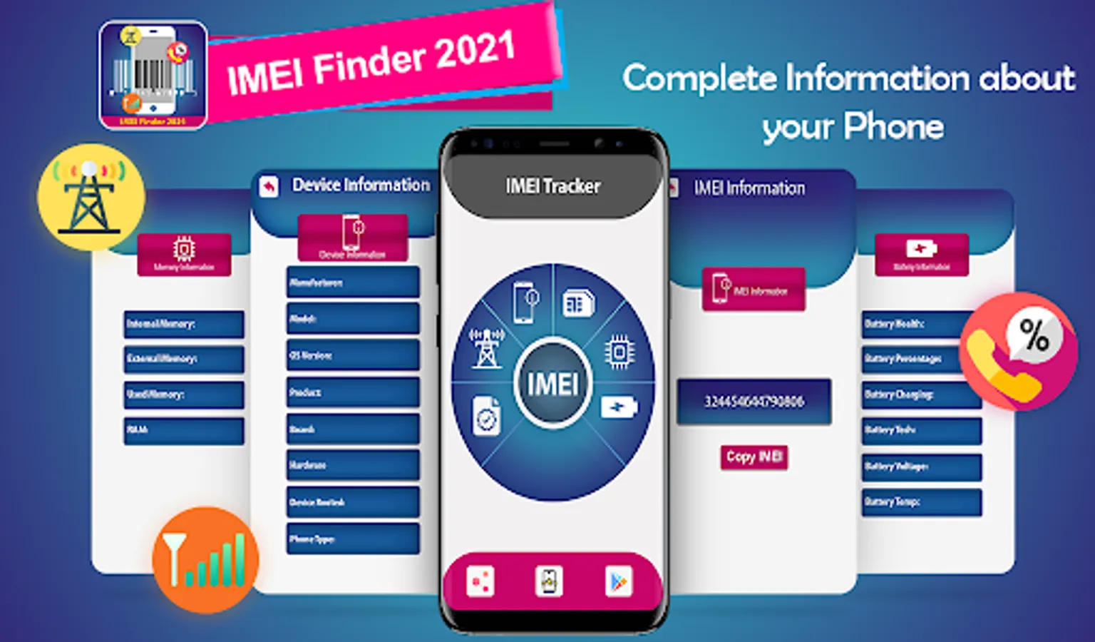 IMEI number Checker Find device info help you to check IMEI Number, Network info, device info and battery info, dual sim info and memory info etc. using this IMEI Checker you can copy your device complete info and IMEI number to clipboard or share to your email address for future reference in case your mobile gets lost or stolen.