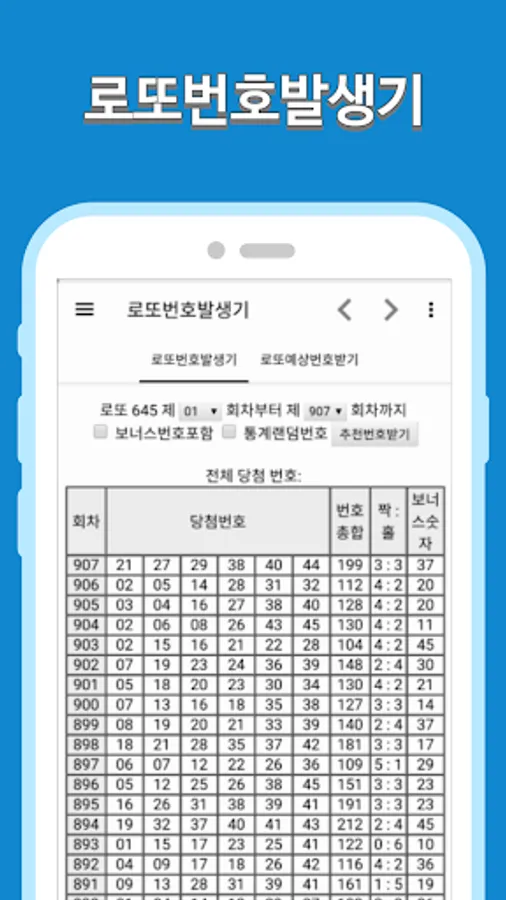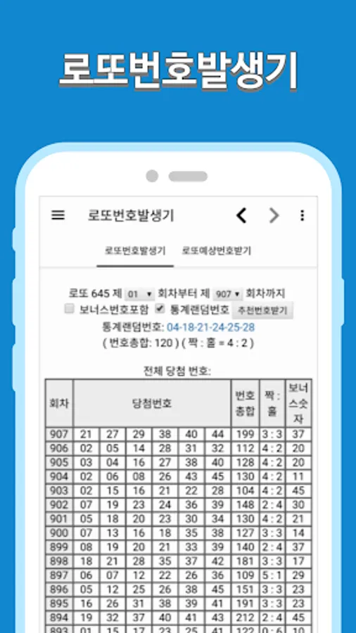 로또번호발생기 - 회차별 당첨번호 통계 분석 Screenshots