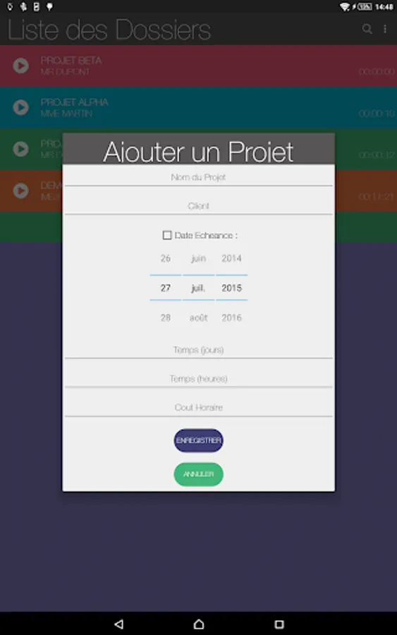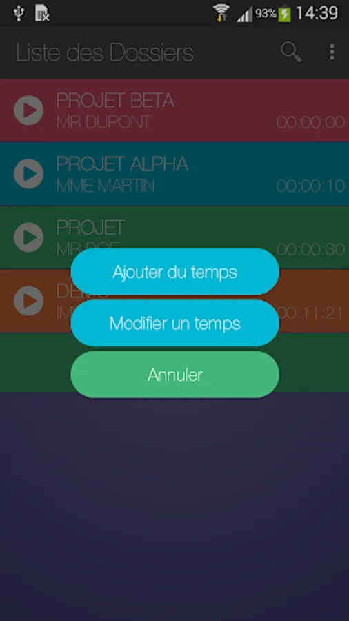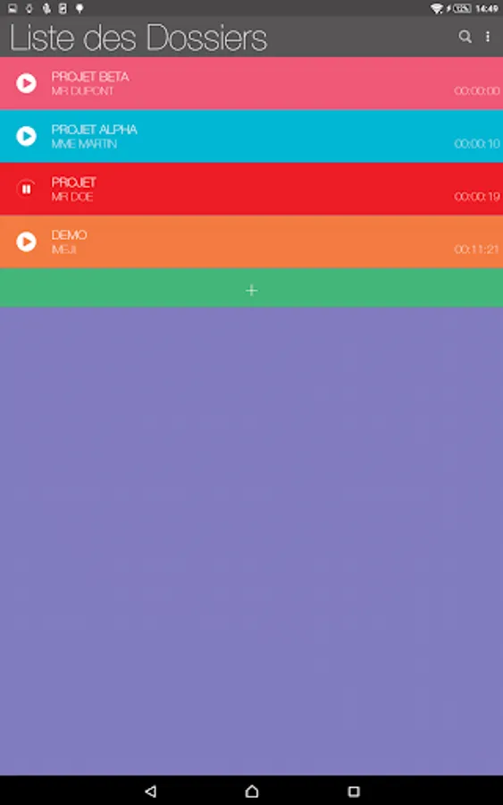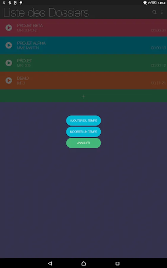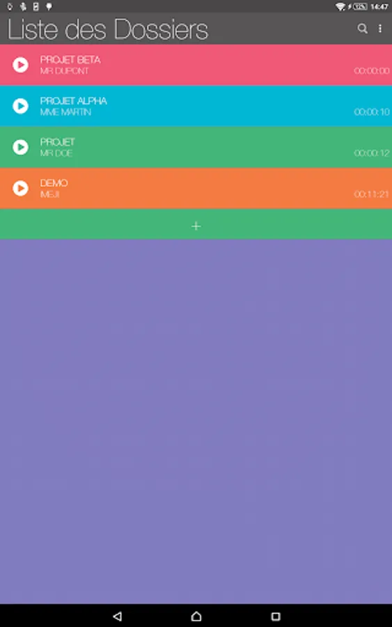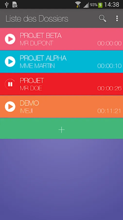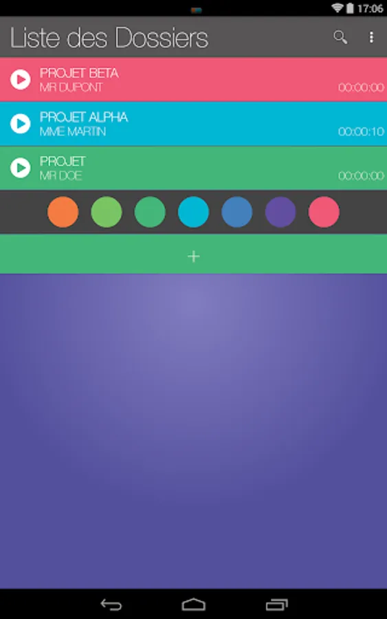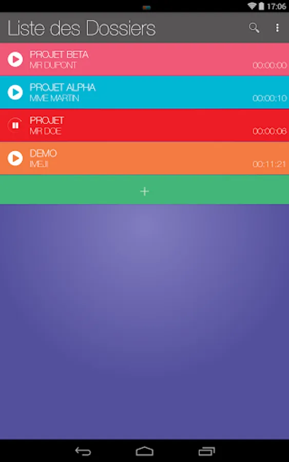 You can add a project and monitor in real time the time you spend there. Simply click the "Play" button and the time begins to count down. Click again to pause.