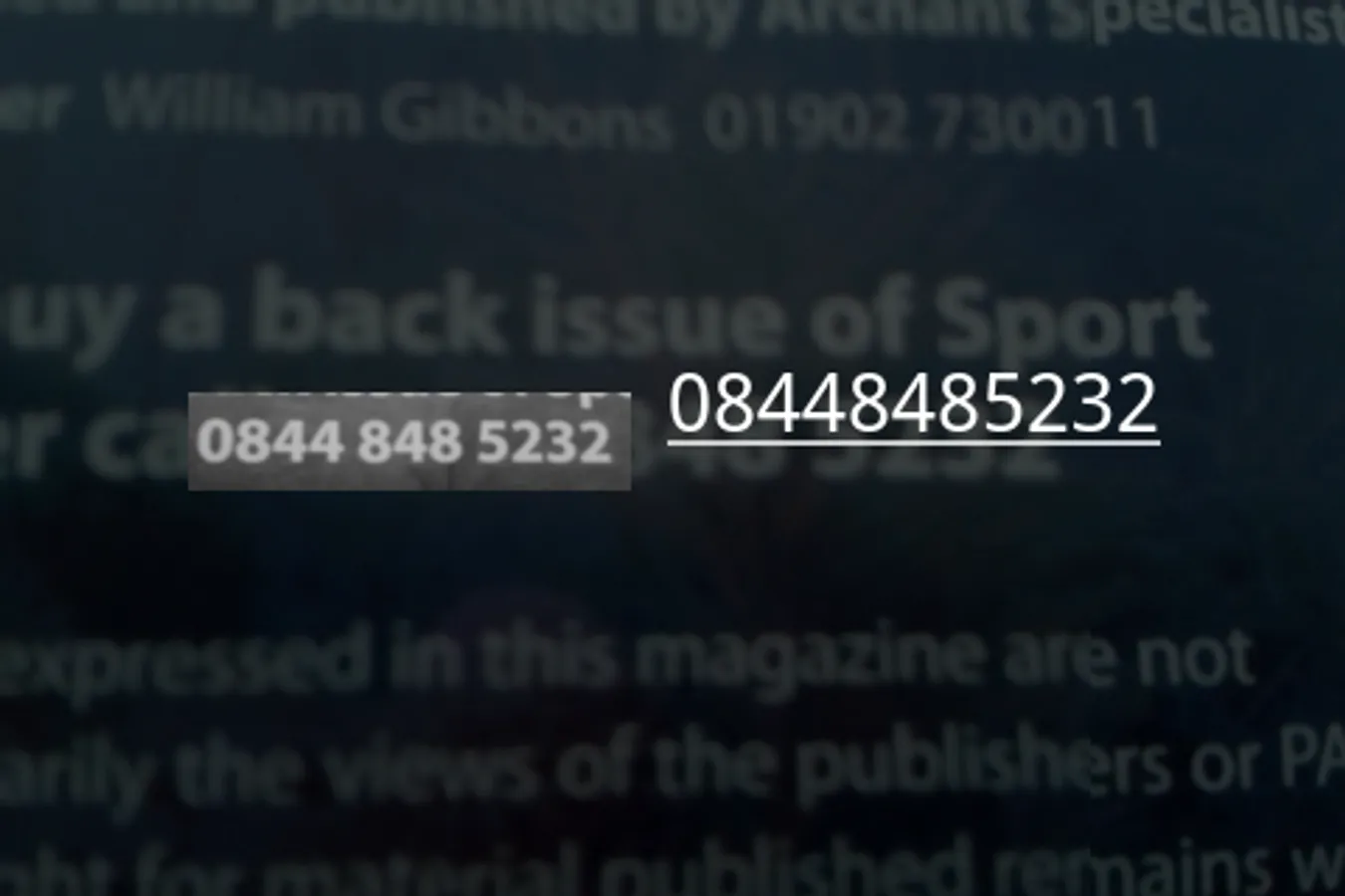 (4) Recognition works best on numbers written in large clear fonts with good contrast (i.e. dark numbers on light background or vice versa). If there was a problem with the recognition, then simply correct any errors or try again. Number Scanner is designed for printed numbers, although clear handwritten numbers (not joined-up) are also often recognised. Number Scanner also recognises certain symbols like the "+" used for international dial codes.
