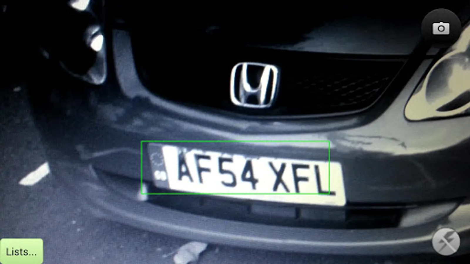 (1) Hold your Android device horizontally, making sure the camera is not obscured. Try to line up the vehicle number plate such that it falls roughly within the green focusing rectangle.
