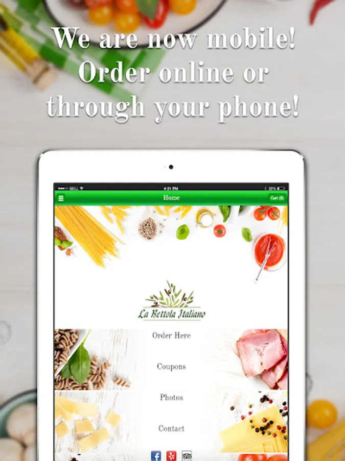 La Bettola Italiano is now mobile! Download today and order online from our website or from your phone! Receive 10% off your first order using coupon code: MANGIA
