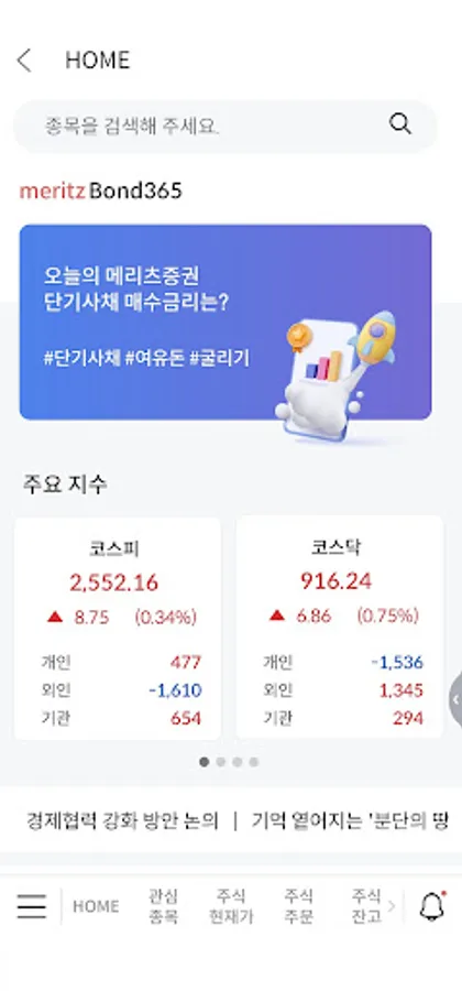 ① Account opening, domestic stocks, overseas stocks, financial product transactions and banking can be used at “Meritz SMART”.