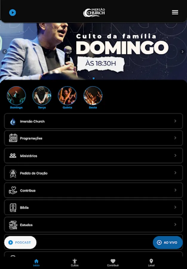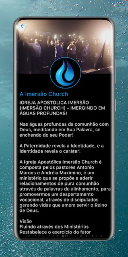 The Imersão Church is composed by the pastors Antonio Marcos and Andréia Maximino, it is a ministry that proposes to join relationships of pure communion through words of alignment, to promote a vocational awakening, through discipleship generating lives that love to serve the Kingdom of God.