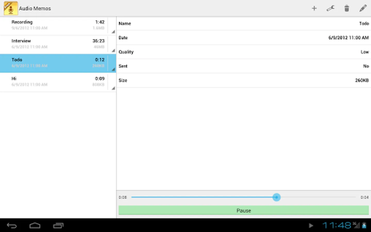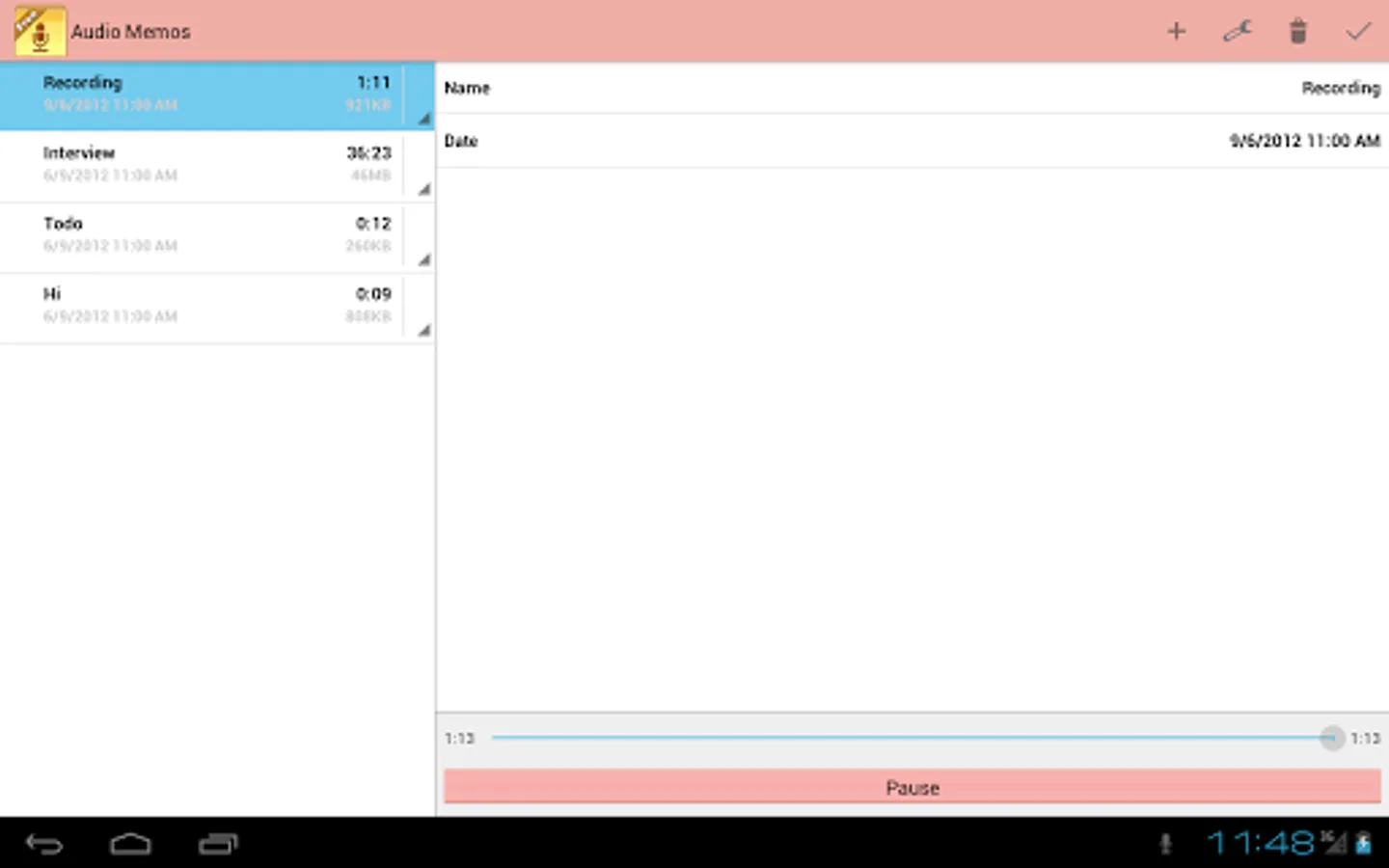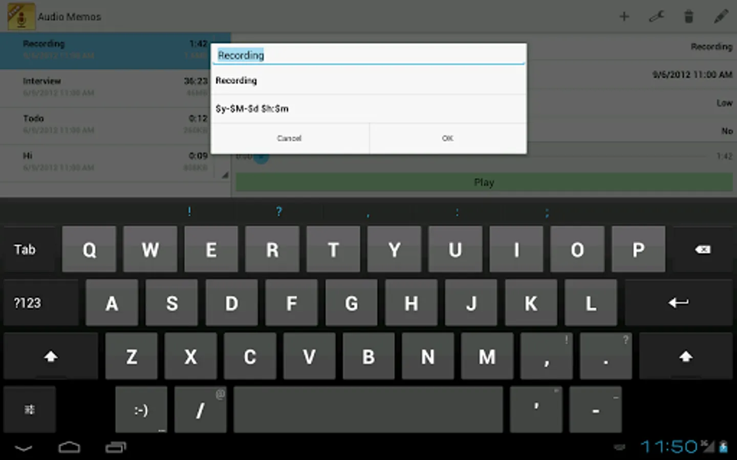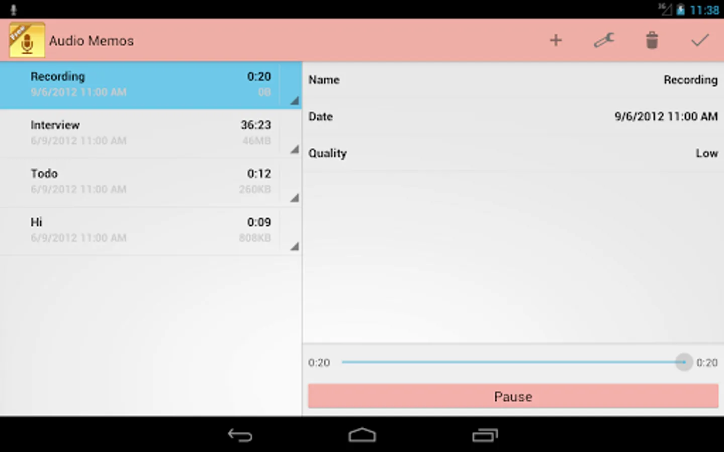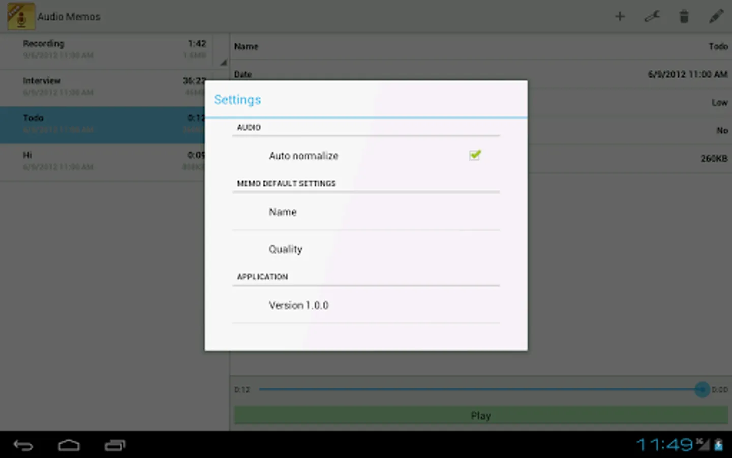 Audio Memos is a professionally made voice recorder. It has an amazingly intuitive interface, which is easy to use and full of powerful features. Use it for interviews, lectures, music sessions, briefings, dictations, sound sampling, voice recording, ... and simplify your recording tasks.