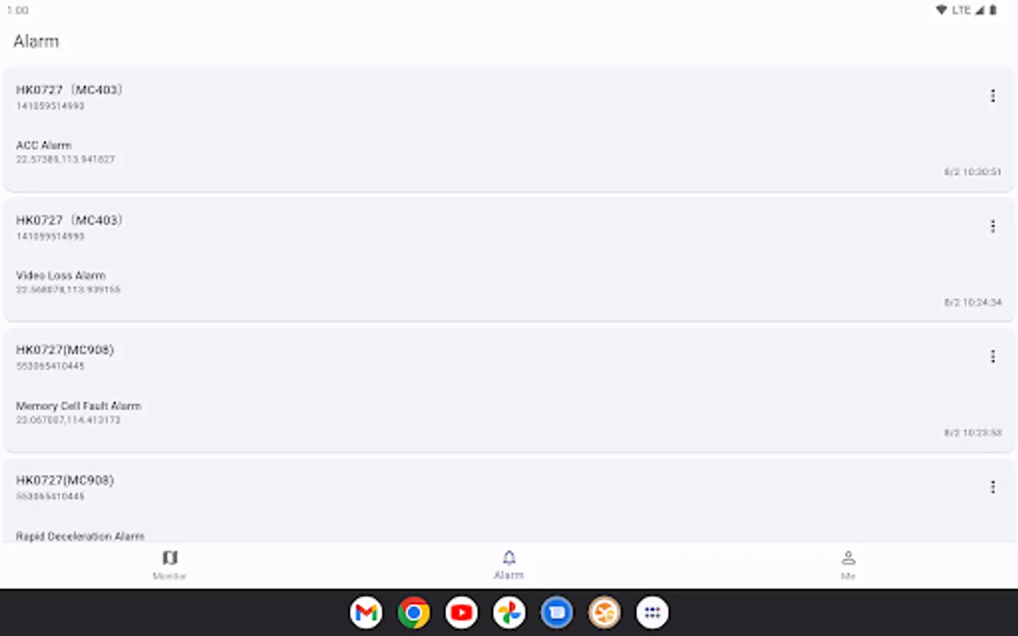 Rich reports: Emergency, no video signal, illegal door opening, hard disk error, overspeed, motion detection, long parking time, temperature, GPS signal loss...
