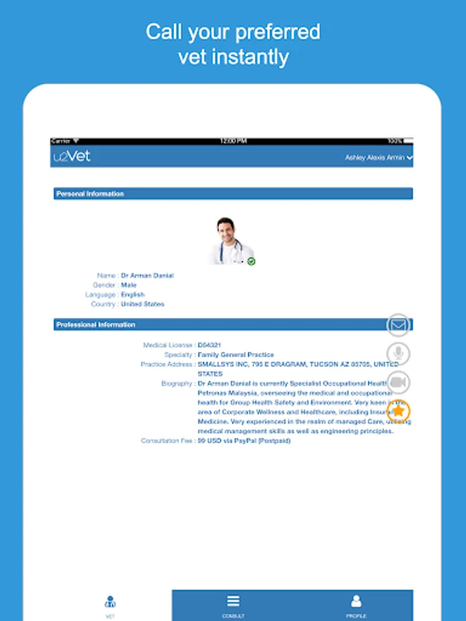 User Consumers connect to expert in realtime worldwide to instantly teleConsult online or makes an Online Appointment. Easy for User Consumer to seek professional services from U2xx expert from anywhere in the world. Logs and archives as options for the session and help with payments and new services.