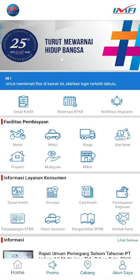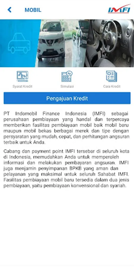 IMFI EZ For You adalah sebuah aplikasi yang diperuntukan untuk Calon Konsumen dan Konsumen IMFI.
