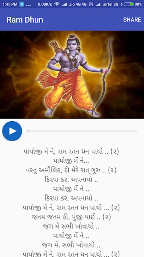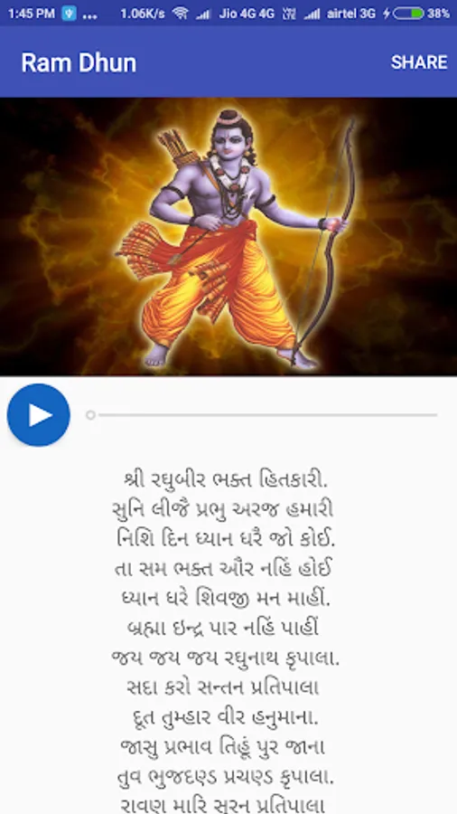 In this app, i have listed some of the ram dhun, aarti, and chalisa.