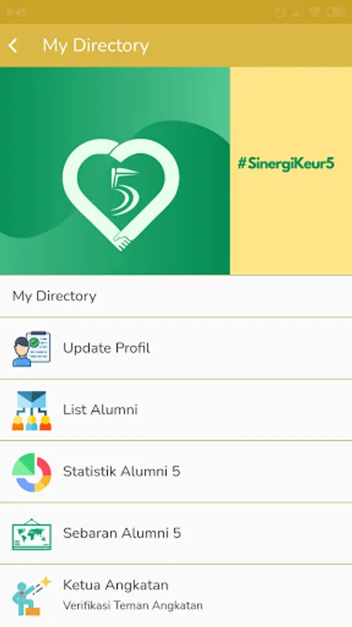 Fitur dan Menu dari Apps ini mewadahi Alumni dalam bertukar informasi, seperti: