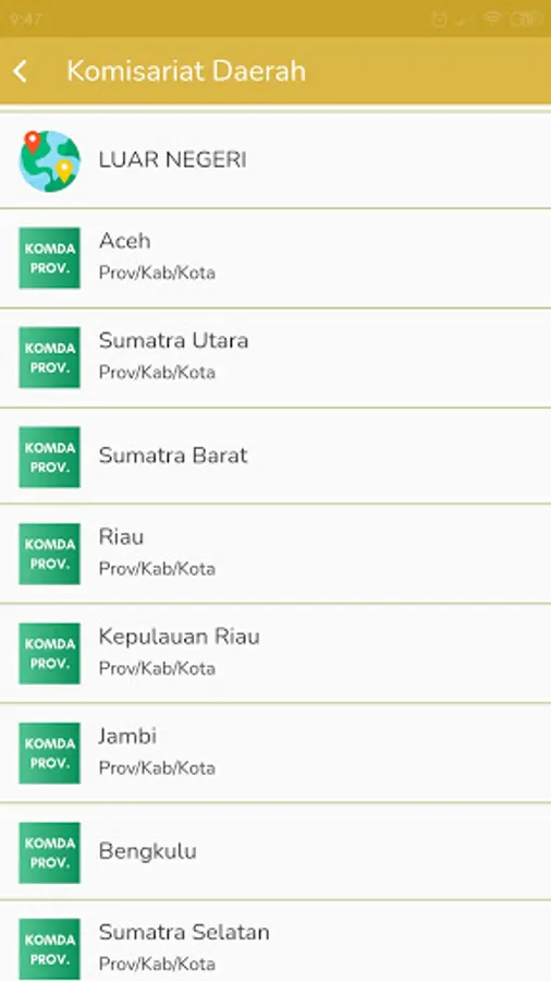 - Komisariat Daerah LN & DN (34 Provinsi)