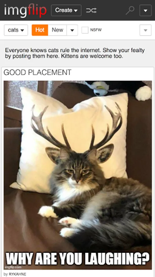 - Submit your creations into the Imgflip community in hundreds of categories such as Fun, Gaming, Cats, and Reaction GIFs. Upvote your favorites and join the discussion using Imgflip's original Meme Comment System!