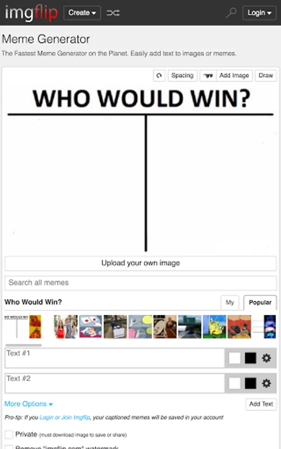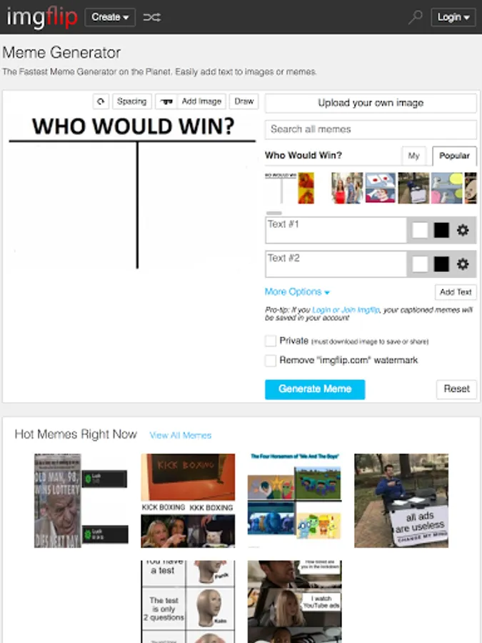 - Add text, stickers, drawings, spacing/padding, special image effects, and more to the memes you create