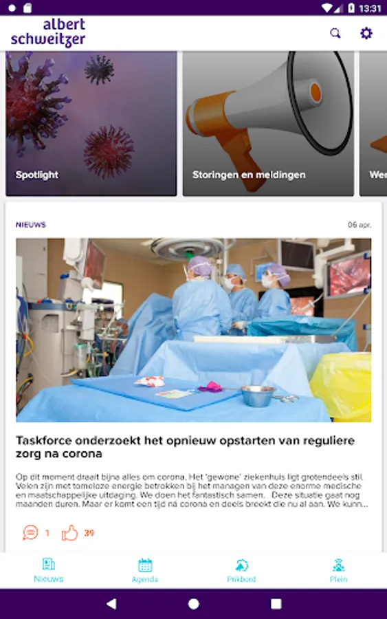 Do you work in the Albert Schweitzer hospital? Then you are always free news app ASA informed of the latest news, you have access to the ASZ agenda, you can always view current work and you can use our bulletin board.