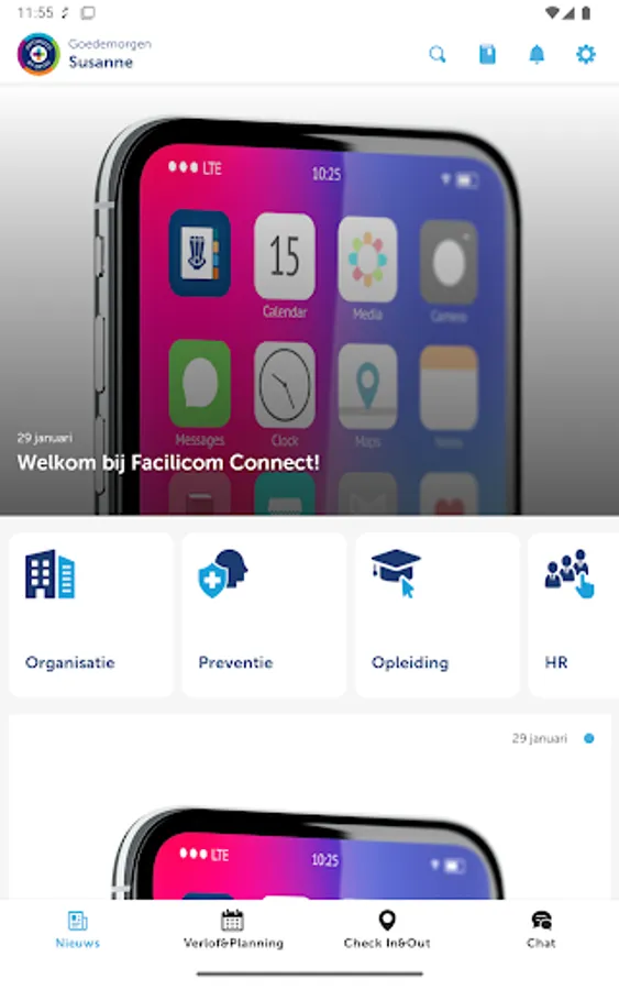 With Facilicom Connect, as an employee of Gom and Facilicom, you have everything in 1 app to start your working day and arrange your planning.