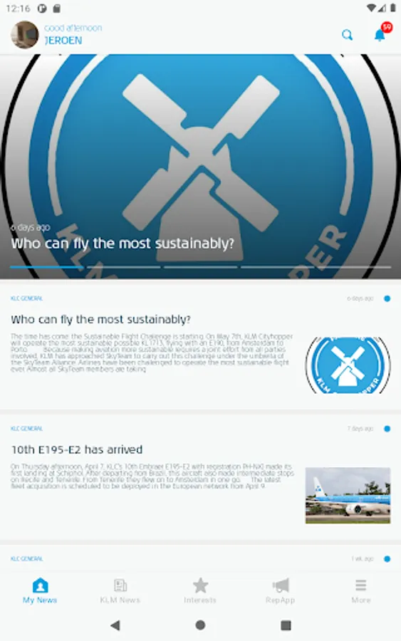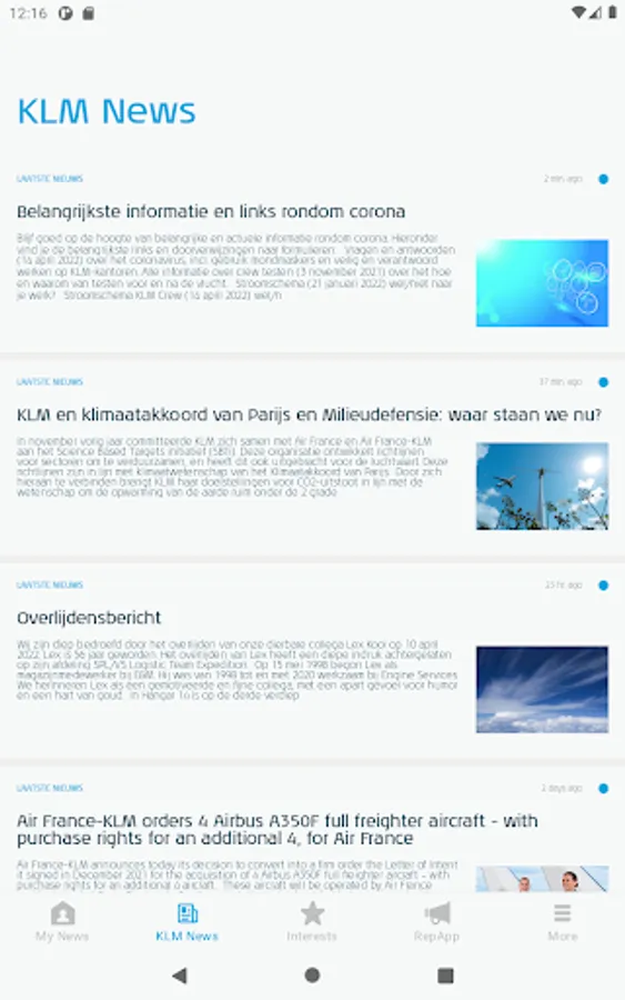 The KLM NewsApp is for employees and former employees of KLM. Read the latest KLM internal news from your department.