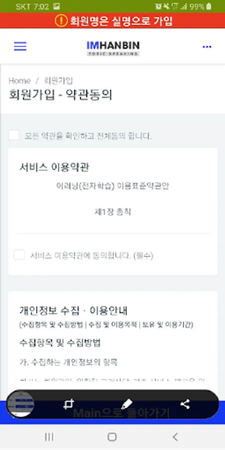 Sinchon YBM Imhan Binto speaking students learn the "four essential items" step by step application.