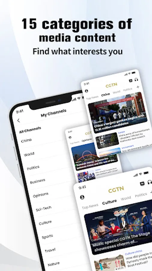 The latest version of the CGTN app supports five languages: English, Spanish, French, Arabic and Russian. It features a wide array of original content, including breaking news, in-depth stories and livestreams. The app also hosts a comprehensive archive of original articles, audio, video, and TV shows covering topics across politics, business, technology, science, sports, nature, culture and others. It gives you access to all the trusted information you need on the go.