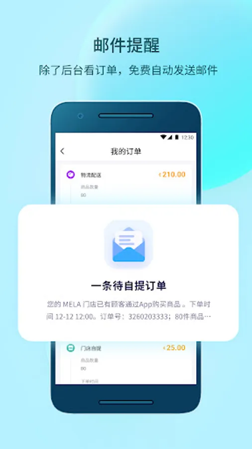 ● After customers place an order, free email reminders will not miss every order.