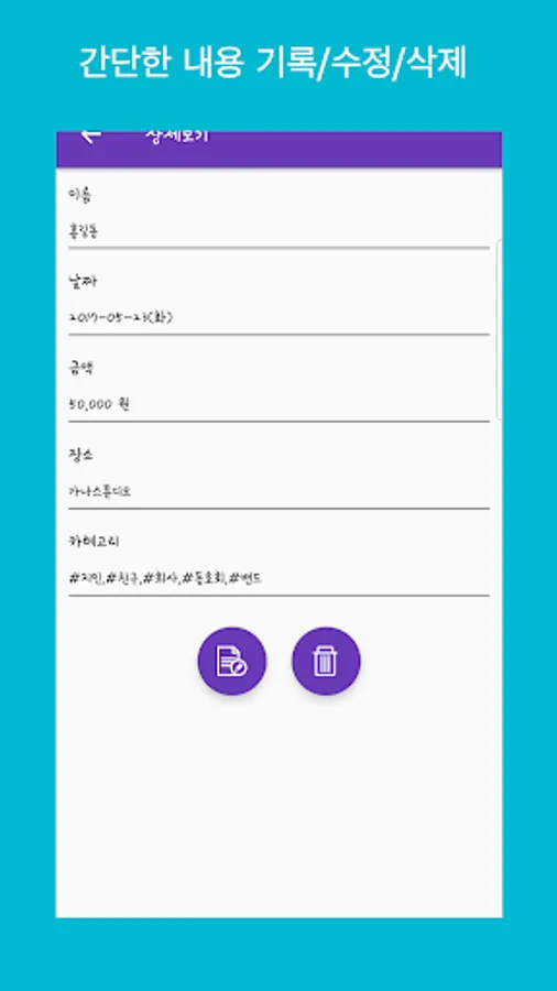 The Diary Application for storing the amount of money I gave receive at weddings or other events digits.